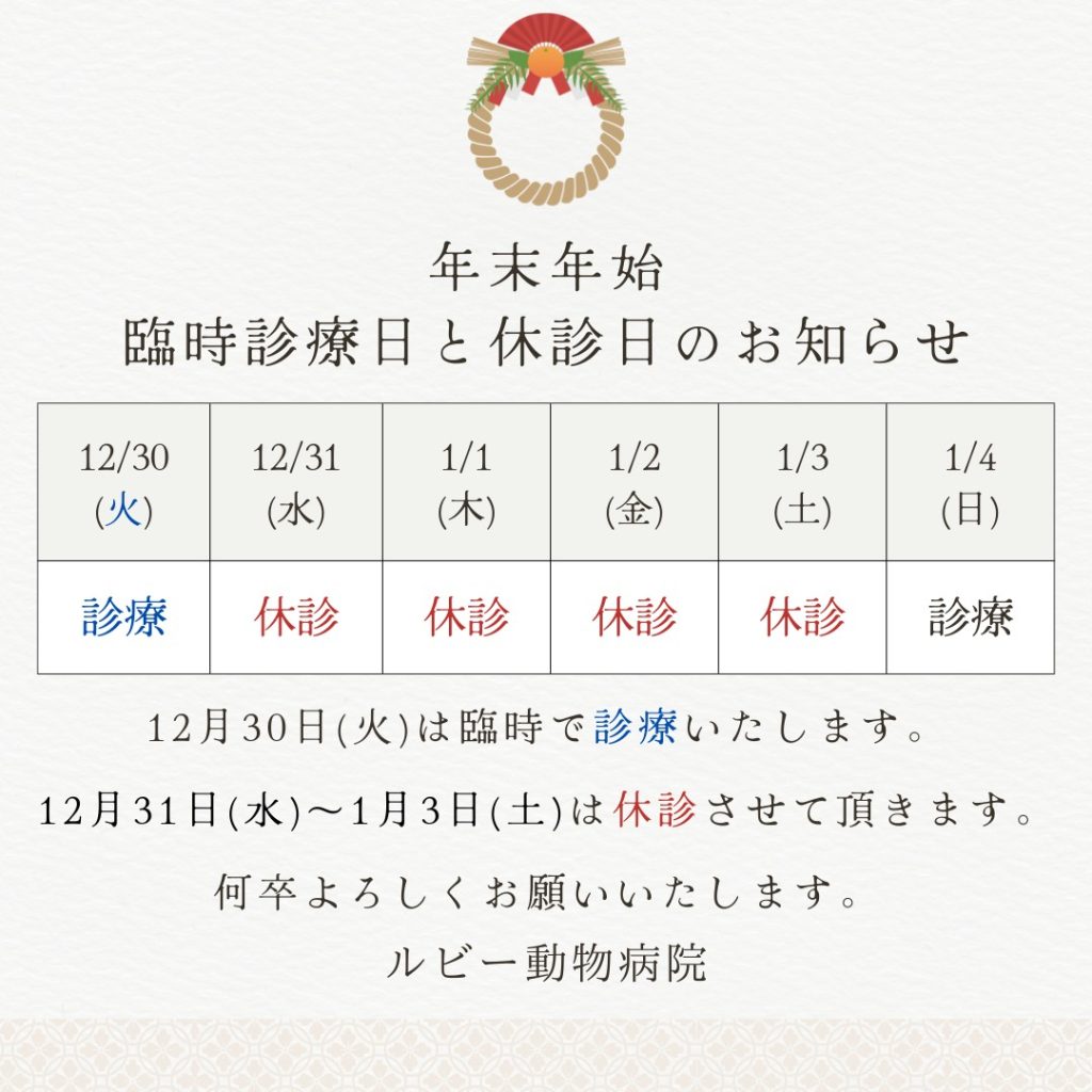 12月31日(水)〜1月3日(土)は休診させて頂きます。
